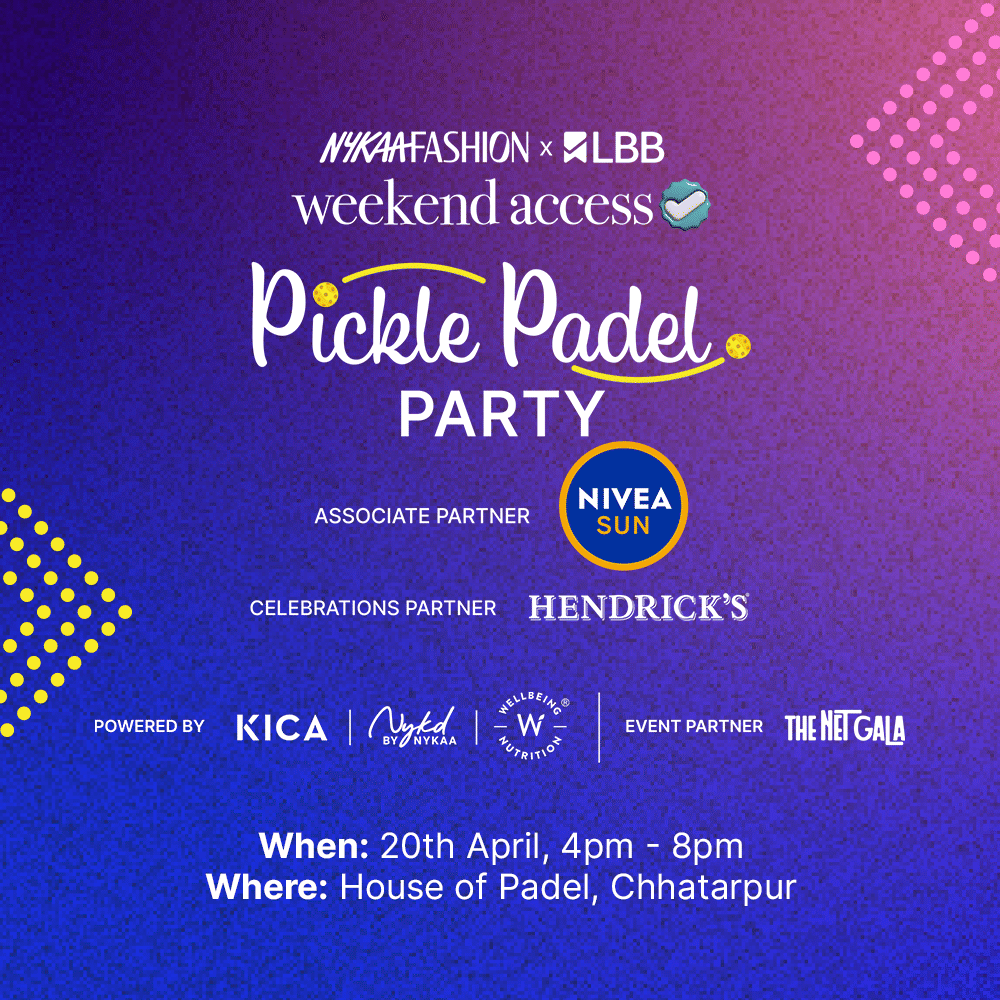 Delhi, you’ve heard of pool parties, kitty parties, birthday parties: now, get ready for a unique event that is set to make your summer even hotter – well, figuratively, at least! Nykaa Fashion x LBB Weekend Access brings to you The Pickle Padel Party, Associate Partner Nivea Sun, Celebrations Partner Hendrick's, Powered By KICA, Nykd by NYKAA, and Wellbeing Nutrition, and Event Partner The Net Gala, where you can look forward to sporty fun, food, and fulfilling activities!