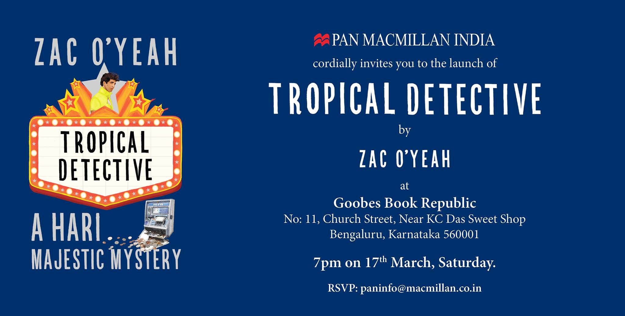 Catch the launch of Tropical Detective by Zac O'Yeah at Goobes Book Republic and get to interact the author himself.