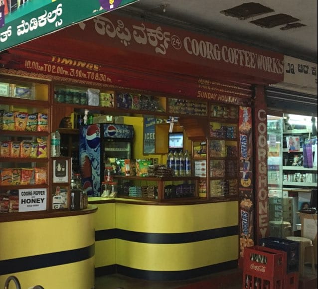 Coorg Coffee Works is one of those old school coffee shops that has all your favourite candy from the 90s and that strong and satisfying smell of coffee wafting through the air. This quaint little place sells organic tea and freshly ground coffee from the fields of Coorg and you can buy it by the kilogram.