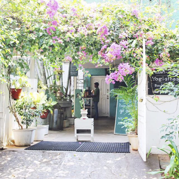 Yogisthaan Cafe located in Indiranagar not only serves vegan food but also has a space for yoga classes and rooms for one to stay at.