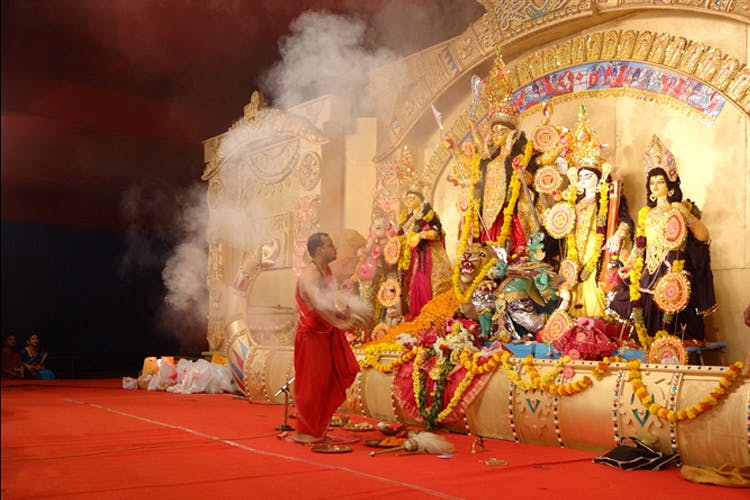 Couldn't make it home for Pujo this time? Missing your mum's cooking, pandal hopping, hanging out with friends and eating greasy, fried Bong food till you are sick to the gills? Our city may not be able to rival the fervour of the Durga Puja scene of Kolkata, but we do have our fair share of well-known pujas that have grown over the years and have made many-a-Bengali or for that matter Non-Bengalis {That's what Bengalis like to call anyone who isn't a Bengali!}, feel at home.