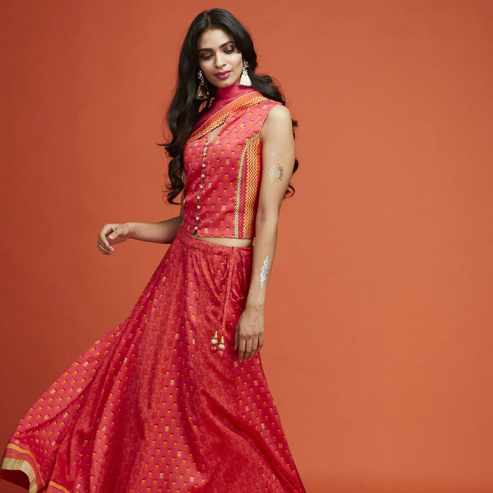 Bookmark Rangriti, a brand that stocks up on ethnic and indo-western wear for women for your shopping trips. Think kurtas in bright reds, blues, oranges and yellows with Indian prints such as paisleys and floral accents, short kurtas, skirts, palazzos, and straight pants. Shop anarkalis, angrakhas, straight kurtas, indo-western tops and kurta dresses at Rangriti. They also stock up on crop-tops, shrugs, and jackets with Indian prints starting at INR 699.