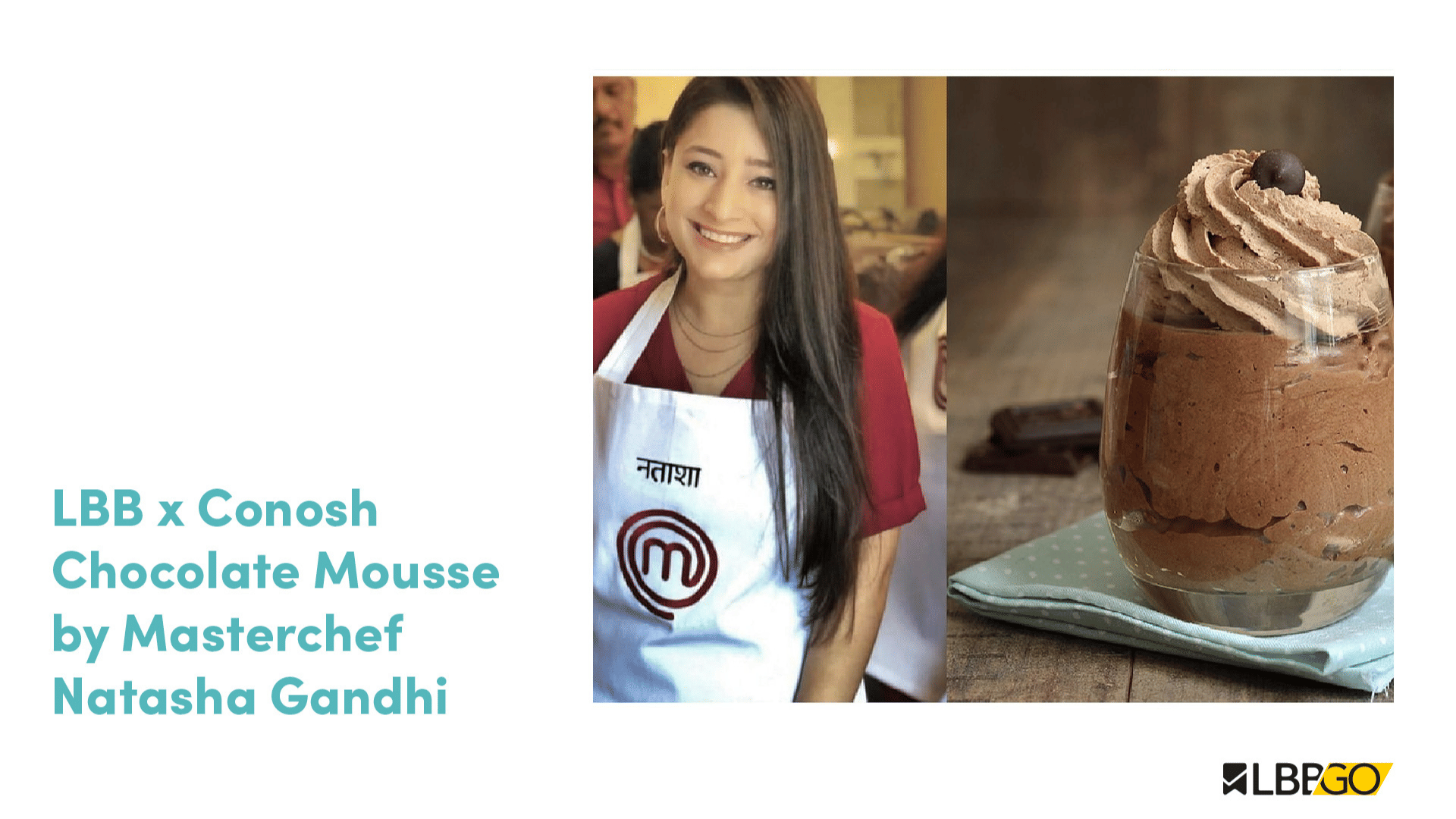 All the dessert lovers! Are you ready to learn directly from a Masterchef? Conosh and LBB brings you an exclusive Chocolate Mousse Workshop, where you would be learning from none other than Masterchef Natasha Gandhi!