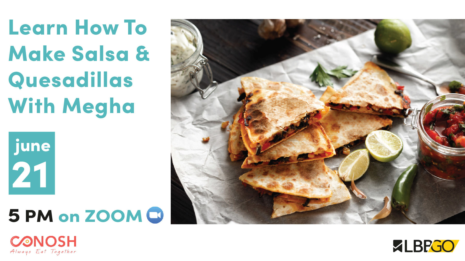Are you a Mexican food lover? If yes, then come and learn how to make Quesadilla and Salsa from scratch with Megha this Sunday, 21st June 2020 at 5PM. So wear comfortable clothes and bring out your inner chef!
