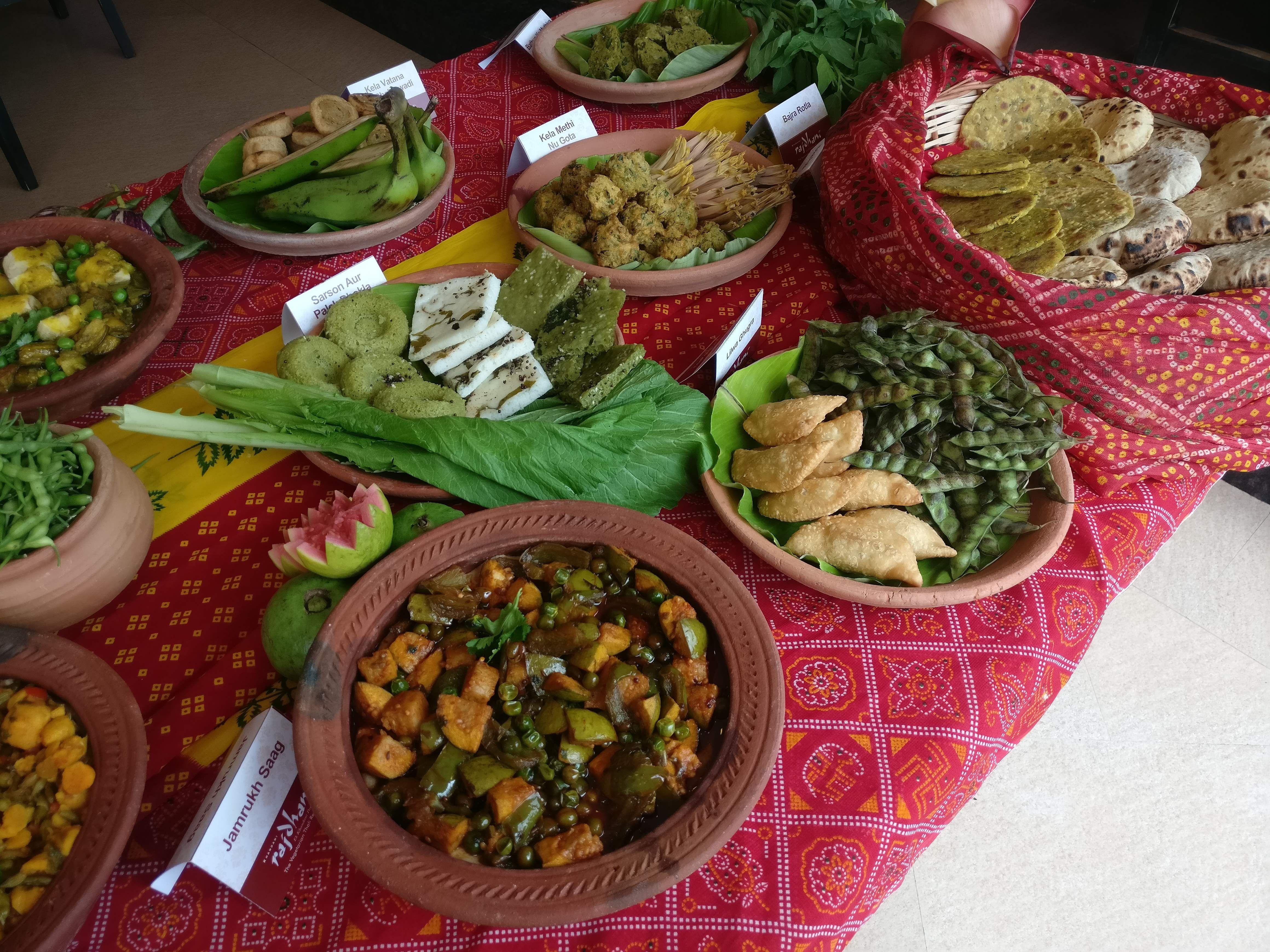 There's an array of Chutneys, Gujarati Farsan, different types of Dals and Curries and of course some exquisite dishes like Surti Undhiyu, Haldi Nu Saag, Jamrukh Saag, Sarson Ka Saag and Mogri Wadi Nu Saag. There's a variety of bread as well like Methi Thepla, Bajra Roti, Jowar Ki Roti and Makki Ki Roti served with a dollop of butter and gud.