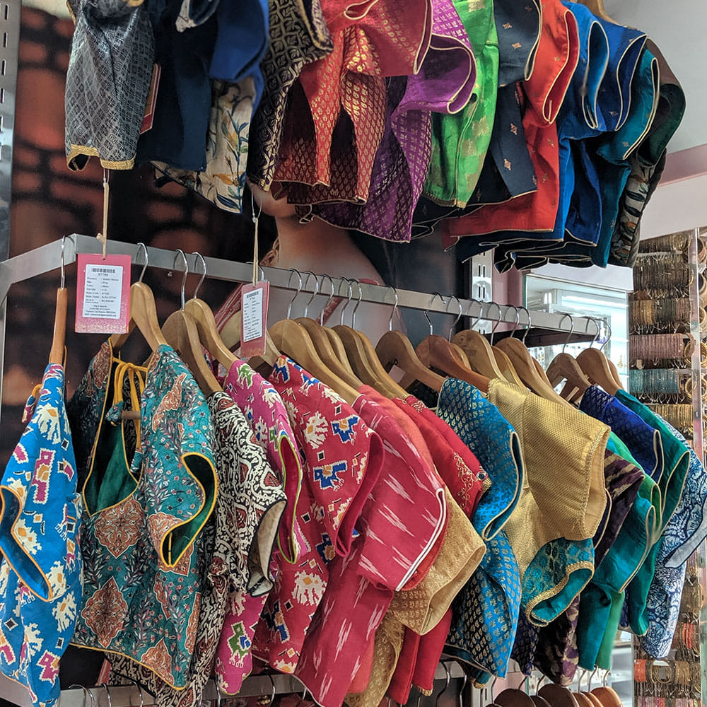 Among their clothing options, we spotted some pretty kalamkari blouses from INR 800 upwards. These can be styled as crop tops or be worn with a lehenga or saree. There's also a collection of everyday wear kurtas (we were thrilled to see a couple with pockets) with leggings to match. Some of our favourite pieces started at INR 600 here. Plus, there's a whole section dedicated to sarees and dress materials. They also undertake tailoring and alterations if you buy from their store.
