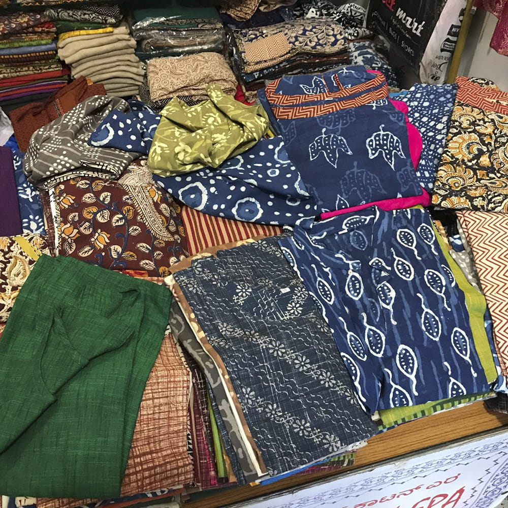 Ladies, if you are looking to update your wardrobe on a budget with a few neat cotton kurtis and palazzos, we just found a place. Thanu’s Kotton Era in Shivaji Nagar is for you to bookmark. Located just around the corner that leads to Infantry Road, we happened to discover this tiny store on one of our Comm Street shopping scenes. Block printed on cotton kurtis, tops, palazzos, and skirts are what’s stocked up here and finding something would require you to browse through the stacks of clothes. Luckily for you, the lady who runs the store is a patient one and will help you with pick the right sizes. Now, when we say prints expect to find the usual array of animal motifs, paisleys, and flower motifs, along with a few geometric prints. We spotted a quite a lot of sleeveless tops that were priced at INR 300 while nosing around.