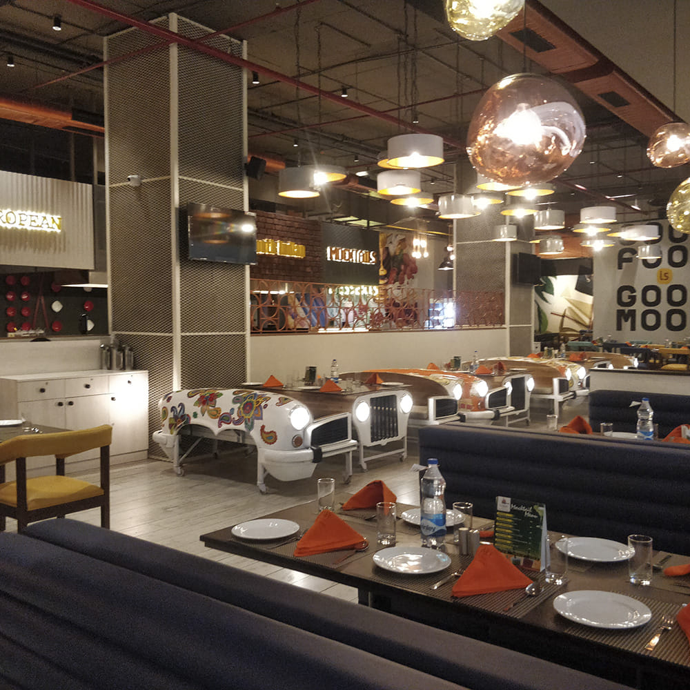 The quirky buffet place has bought its lavish setting and its vintage-car chairs and tables to the lower ground floor at The Marina Mall. Get your squad or family here to enjoy a huge buffet and five live counters to serve your made-to-order pasta, pani puri, dim sums, dosa and masala omelette.