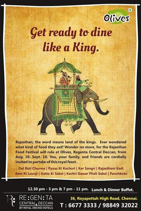 Celebrate the Flavours of Rajasthan in Chennai! Join us for a scrumptious Rajasthani food fest, Pure Veg. Lunch & Dinner Buffet from 26th Aug-10th Sep.