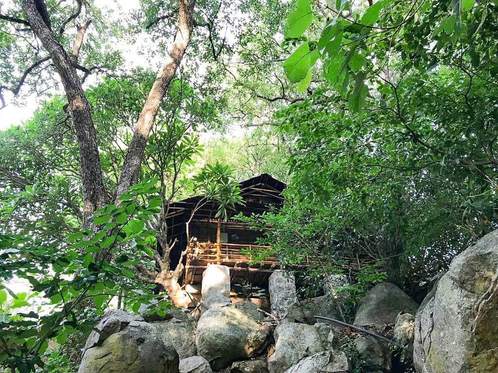The hut is made entirely, as the name suggests, of bamboo. Even the cot is bamboo and the meagre furniture is too. The property has two rooms, which are clean and suffice a nature retreat. The bigger of the two rooms also has an interesting loft that kids and even adults can climb on to for some added fun.