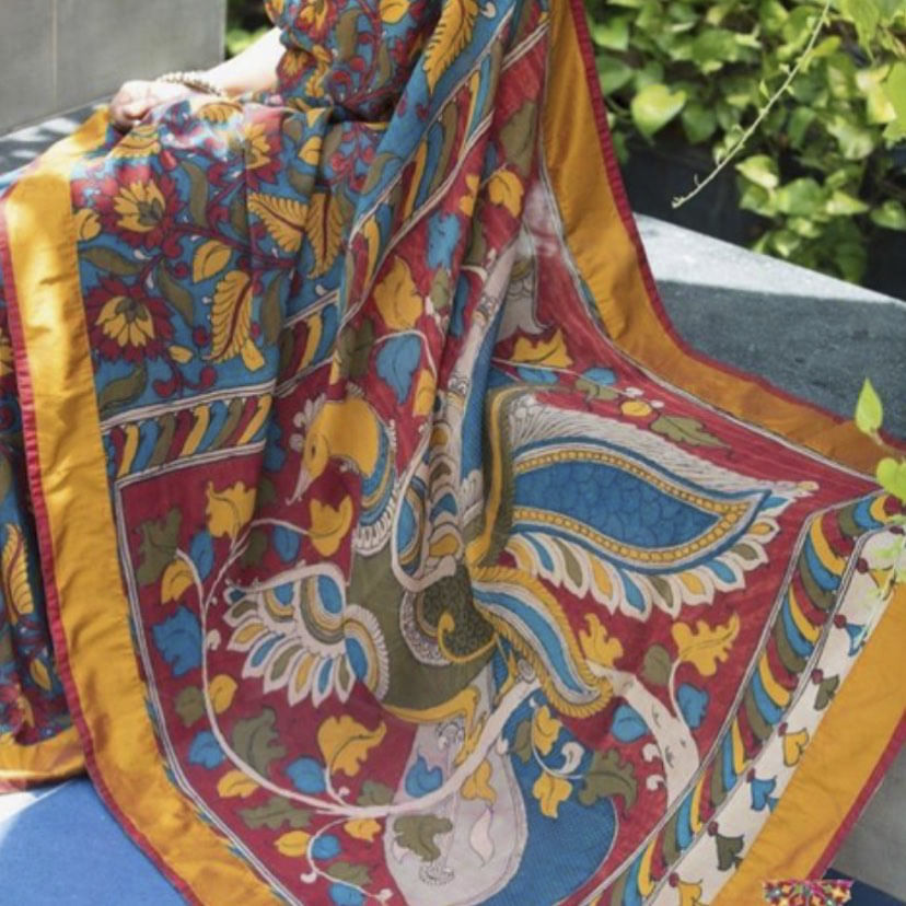 But it’s the Kalamkari designs here that bowled us over. Found across sarees, kurtis and even clutches and bags, the Kalamkari prints here are truly one-of-a-kind and come in a variety of patterns and colours, all made with organic dyes. Jullaaha also has chanderi, raw silk and some rich organza sarees on the second floor. Pair them with a contrasting blouse or get one designed at Jullaaha itself. You can even customize your sarees here where you can show the staff the murals or other patterns of your choice and then get them painted on the sarees.