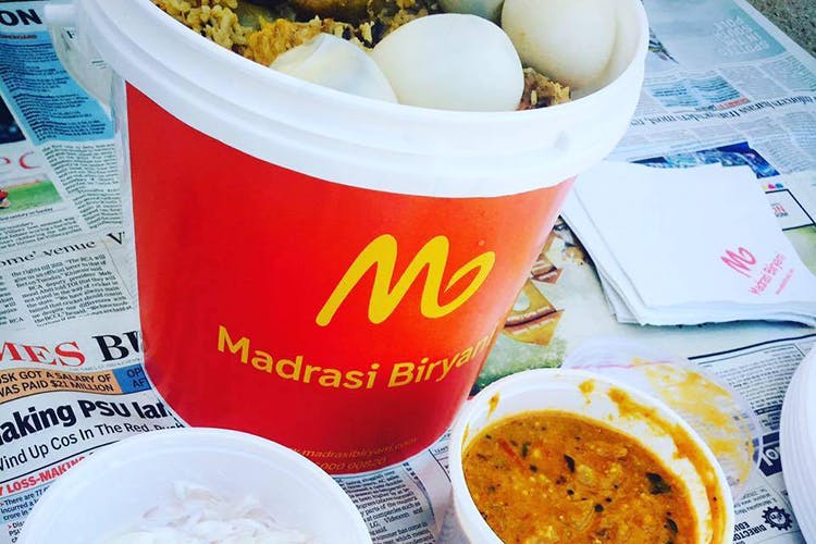 Choose from mutton, chicken or egg biryani {INR 170 – INR 110} or settle for a bucket of the mutton biryani instead {INR 1,800 for a big bucket, INR 1,100 for a small bucket}. They also have delicious sides like Chicken 65, Pepper Chicken and even Chicken Lollipop. For vegetarians, they have the option of a plain biryani that would skip all the meat and egg if you make a request. When ordering through Zomato, a portion of Bread Halwa is complimentary.