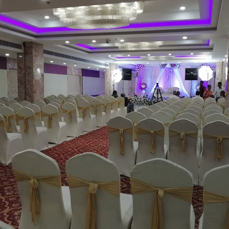 This property in ECR looks stunning with a magnificent lounge and two halls together offering a storage capacity of about 1000 guests. There are about 12 air-conditioned rooms of which 2 are complimentary with hall booking. They offer catering too and prices start from about INR 650 per plate. There's plenty of parking space too.