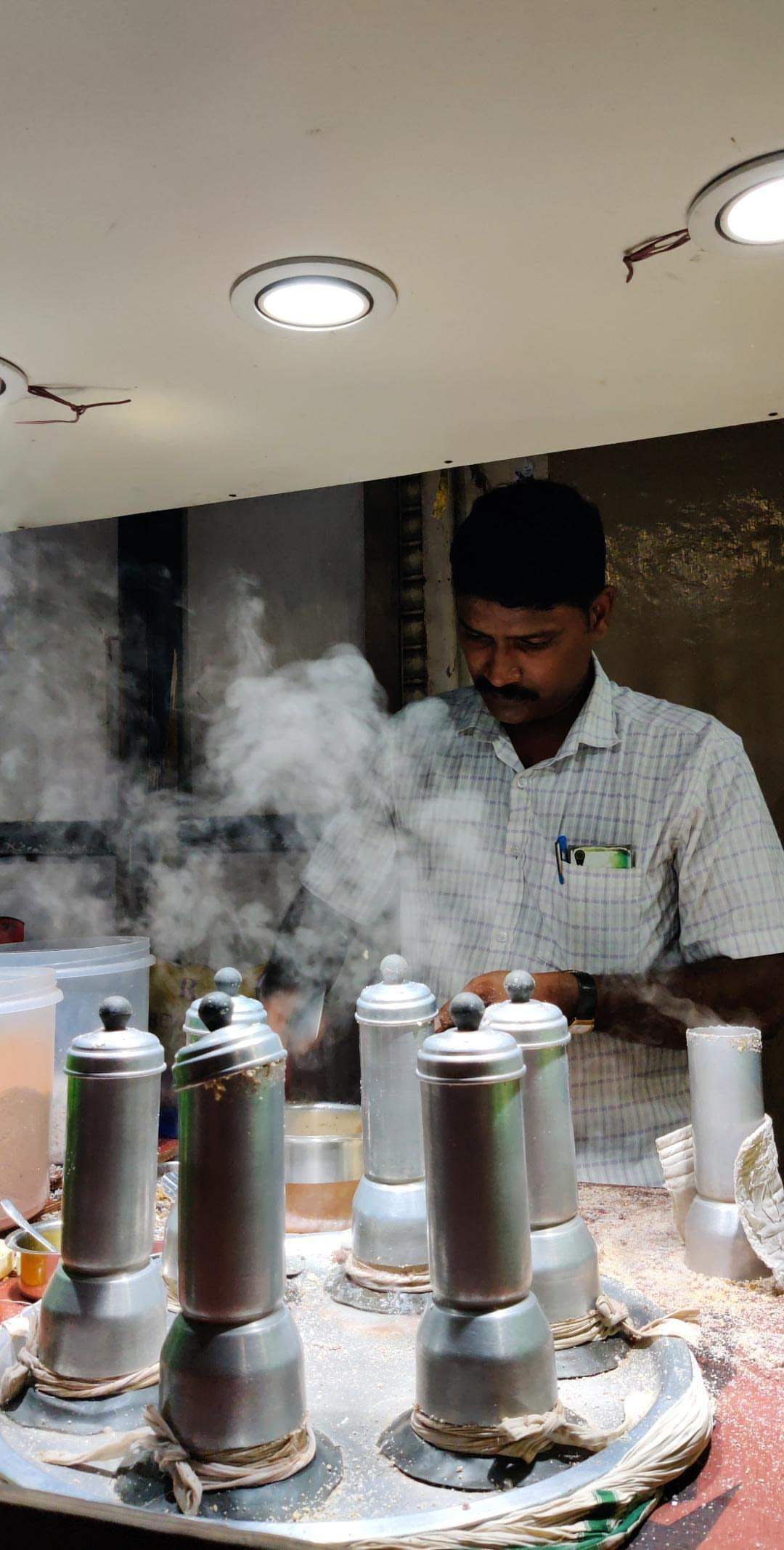 Located on the opposite side of this iconic restaurant, Royal Puttu stall doesn't serve your regular Kerala puttus. Adding his own Tamil style spin, as Shankar, the owner of the stall likes to call it, you can gorge on freshly steamed puttu here.