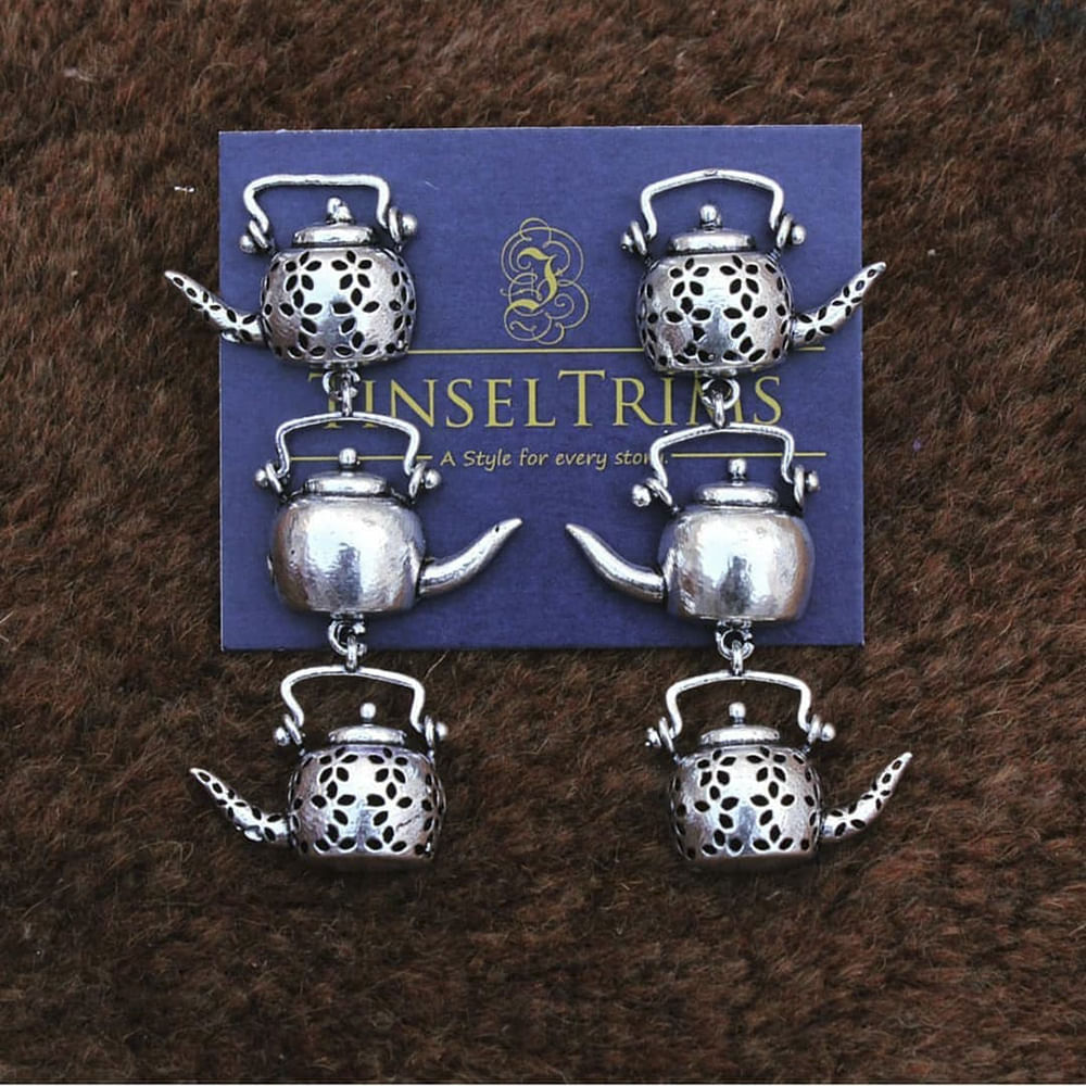 Their studs check all the boxes when it comes to minimalistic quirk. With designs like chaand studs, rani studs, pearl buttons and matte finish floral studs, you will not only love wearing earrings but also grab all the attention. We also found some really cool hook and drop earrings on TinselTrims' Instagram handle. Featuring funky Indian motifs like trishul, damru, fish, peacock, butterfly along with trippy, geometric patterns, these come mostly in oxidized and German silver and start from about INR 200.