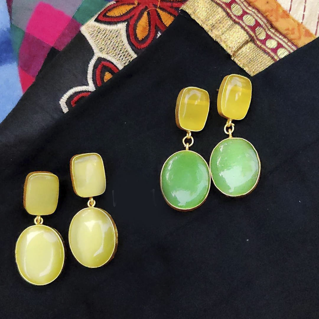 Their neckpieces are no less. You can find a wide variety of awe-worthy chokers in antique silver here. Their ghunghroo kolhapuri choker has our heart. You can also find mirror chokers and maanga chokers in hues of gold and silver here. Vibha even has long neckpieces for you to check out. Their two-layered, dokra square beads one looks like an antique find. We even found statement, mini-bead neckpieces in gold and silver, bullet bead neckpieces and solid, gold-tone beads neckpieces. They've got limited pieces of AD stone necklaces and chunky silver pendants too. Prices for earrings start from about INR 300.