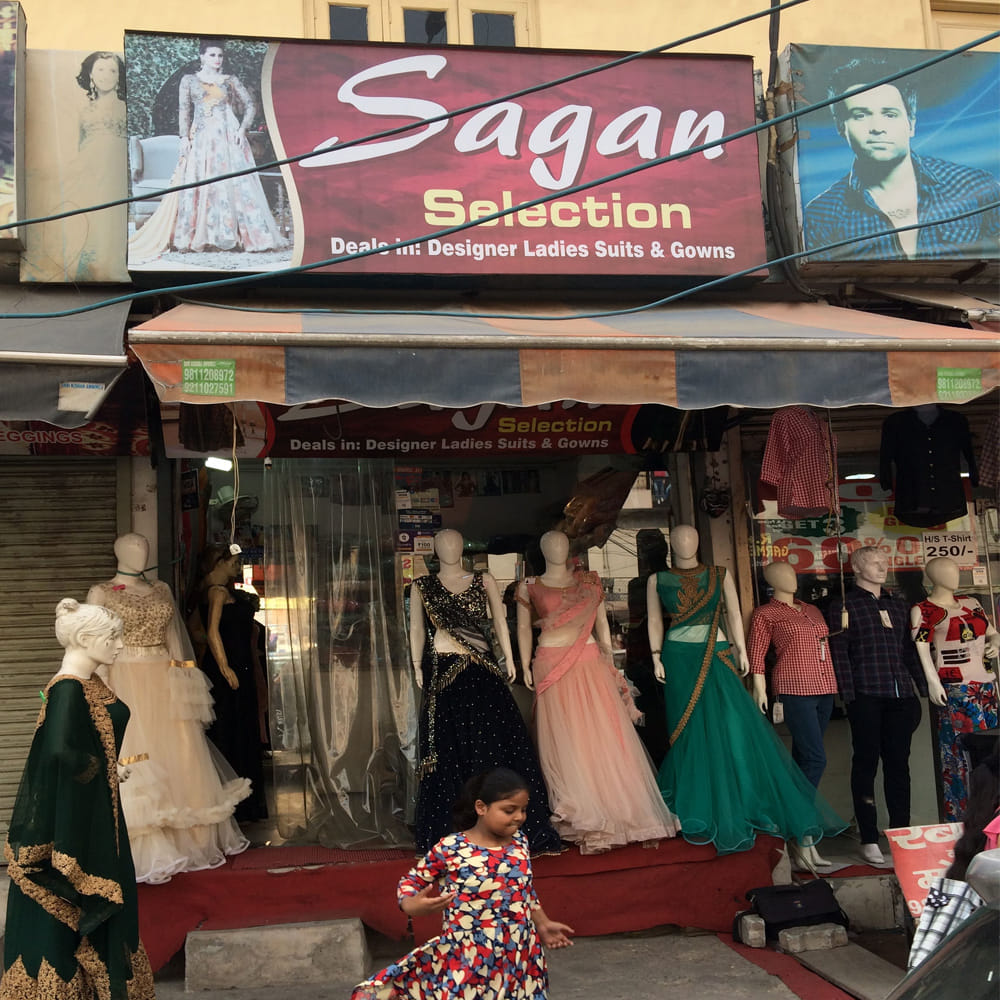 We found Sagan at the end of the entire market, but this store had some of the nicest and least repetitive designs. They have pretty sequinned blouses with lehengas, ethnic gowns, and cotton kurtas as well.