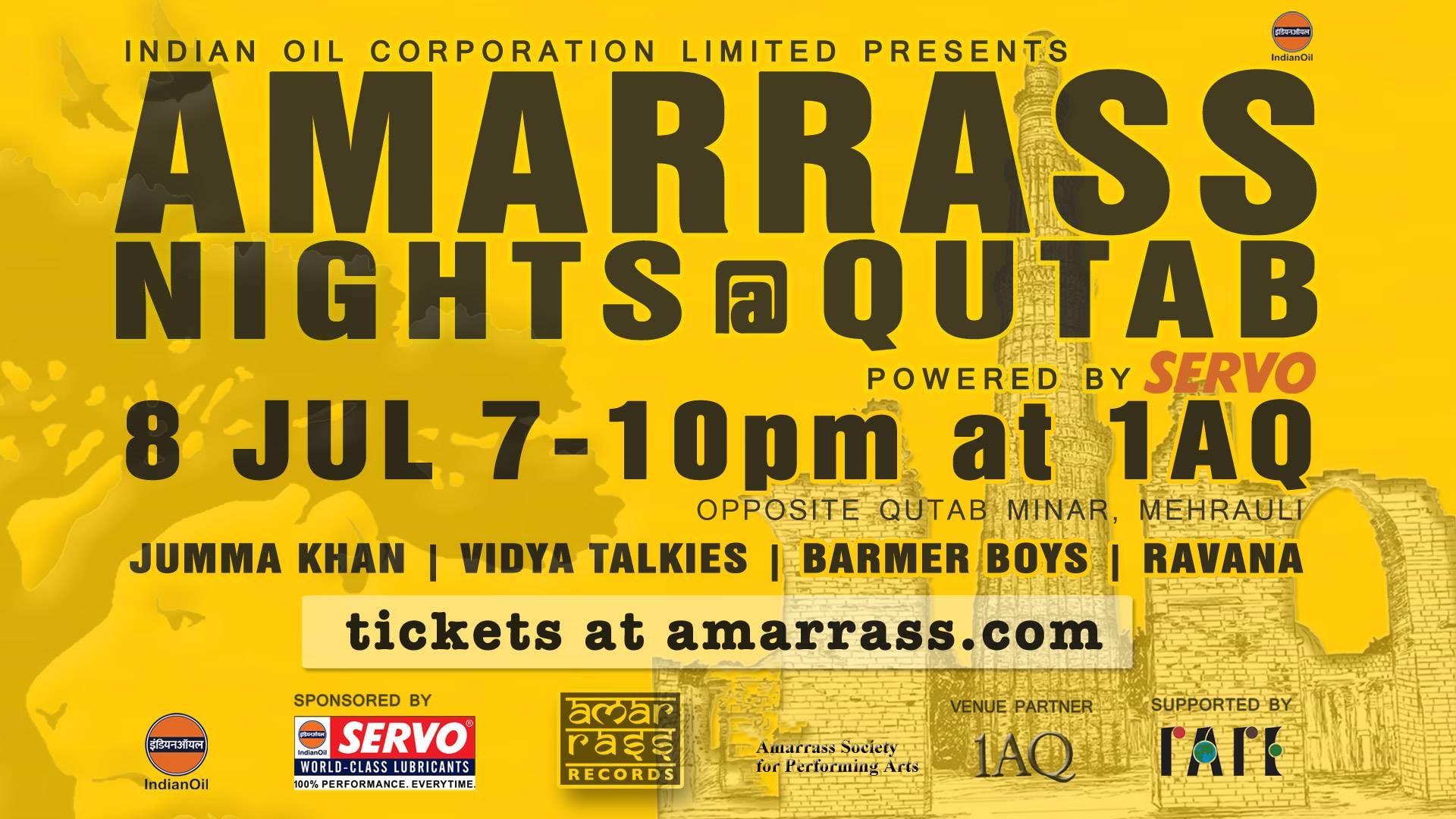 Artists featured at the 1st edition of ‘AMARRASS NIGHTS @ Qutab' are # poet Jumma Khan # Sufi-Gypsy beatbox trio Barmer Boys # Vidya Talkies - film, folk and fusion # alt. electronica producer Ravana