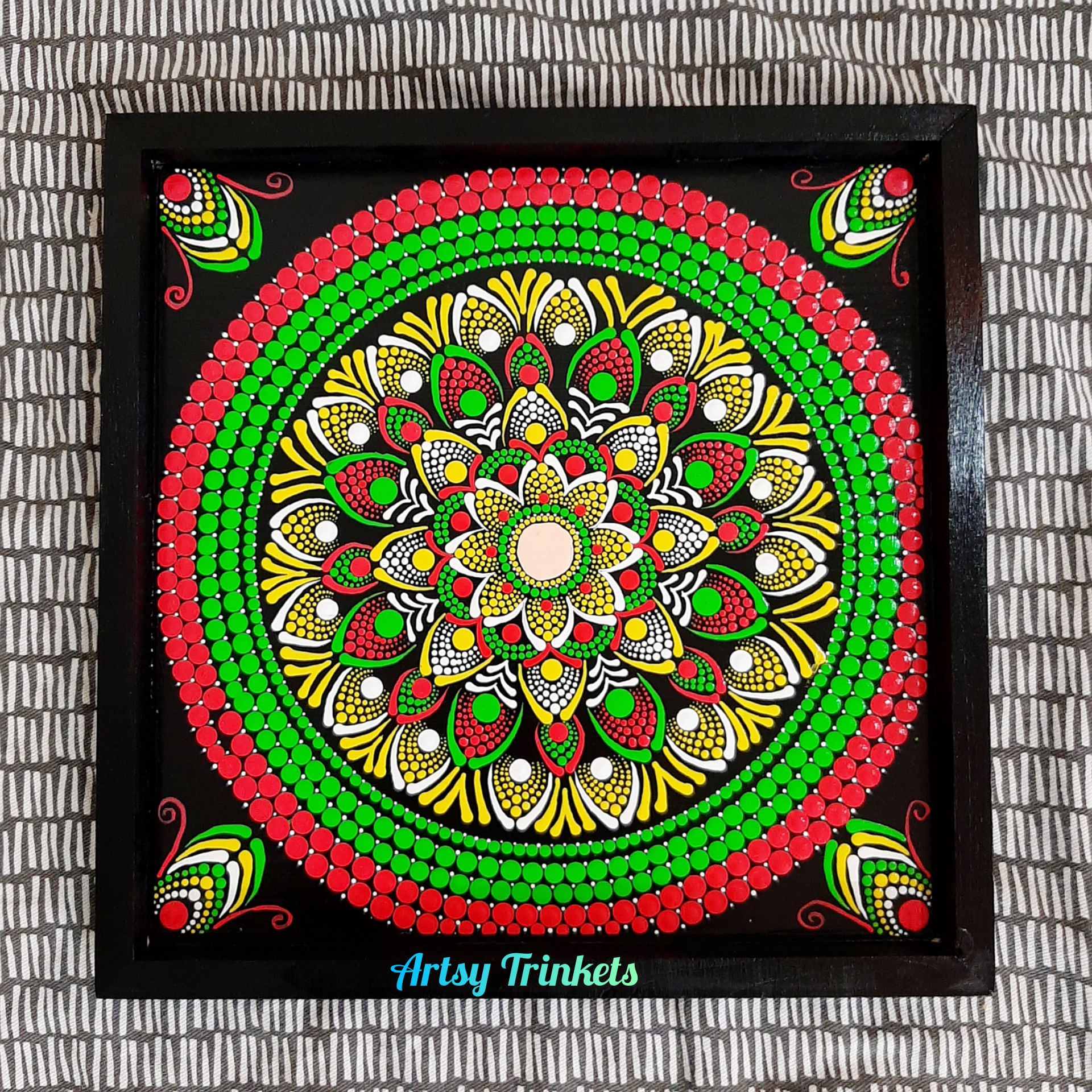 When Divya decided to switch up her corporate lifestyle to be a stay-at-home-mom, she dusted decided to get back to one of her original passions, art in her free time. So began her experiments with a variety of mediums, and while on this journey, she fell in love with Mandala and fluid art. It was from this passion that Artsy Trinkets was born.