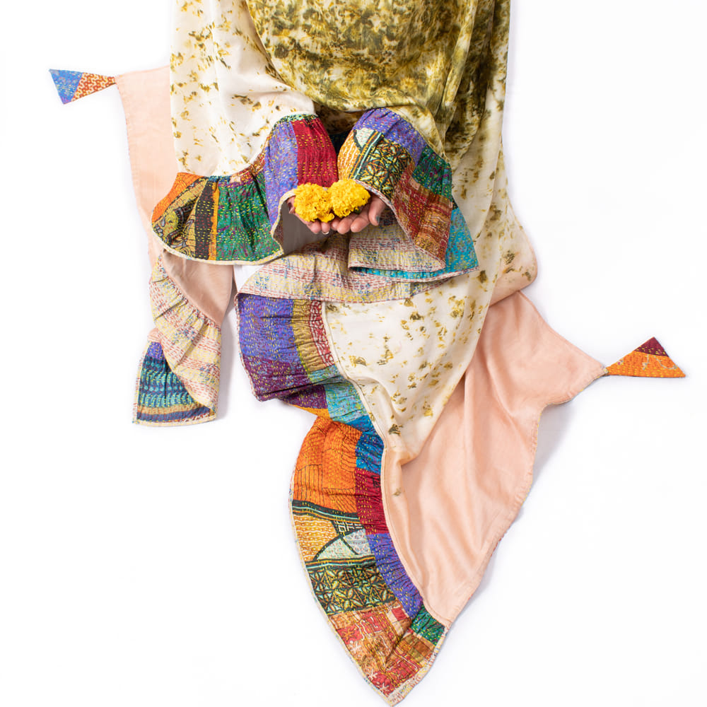They will also be putting up a couple of interesting finds on display from eco-dyed saris and chunaris, zero waste accessories to handwoven chanderi, silks, organic cotton and reversible kimonos. What we’re looking forward to the most are the detachable saris (pallu can be detached to style as dupatta) and fan sari made from Silk chanderi (perfect for the festive season)!