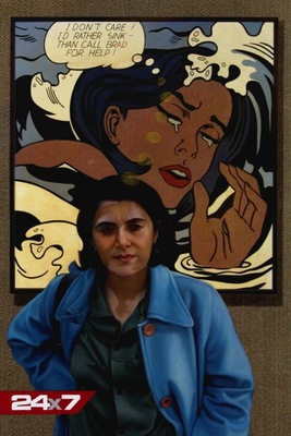This absolutely hilarious canvas {from 2006} takes a dig at the clashing egos in marital heaven. The portrait is of the artist’s wife and in the background is a reproduction of Pop artist Roy Lichtenstein’s work titled the Drowning Girl. Cleverly enough, in the speech bubble Atul Dodiya highlights his initials in the word “Brad” and with a stroke of genius hints at a “24×7” battle. Dragging in the Jolie-Pitt mania that took over the world, he titles this one Angelina, extending his sympathies. Wonder what the wife had to say!
