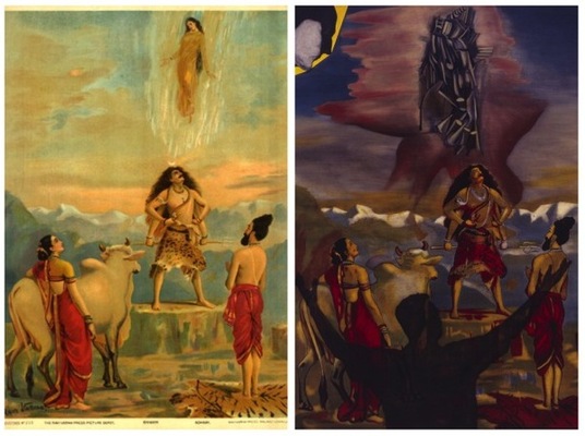 {Left: Gangavataran by Raja Ravi Varma | Right: Gangavataran After Raja Ravi Varma {1998} by Atul Dodiya}