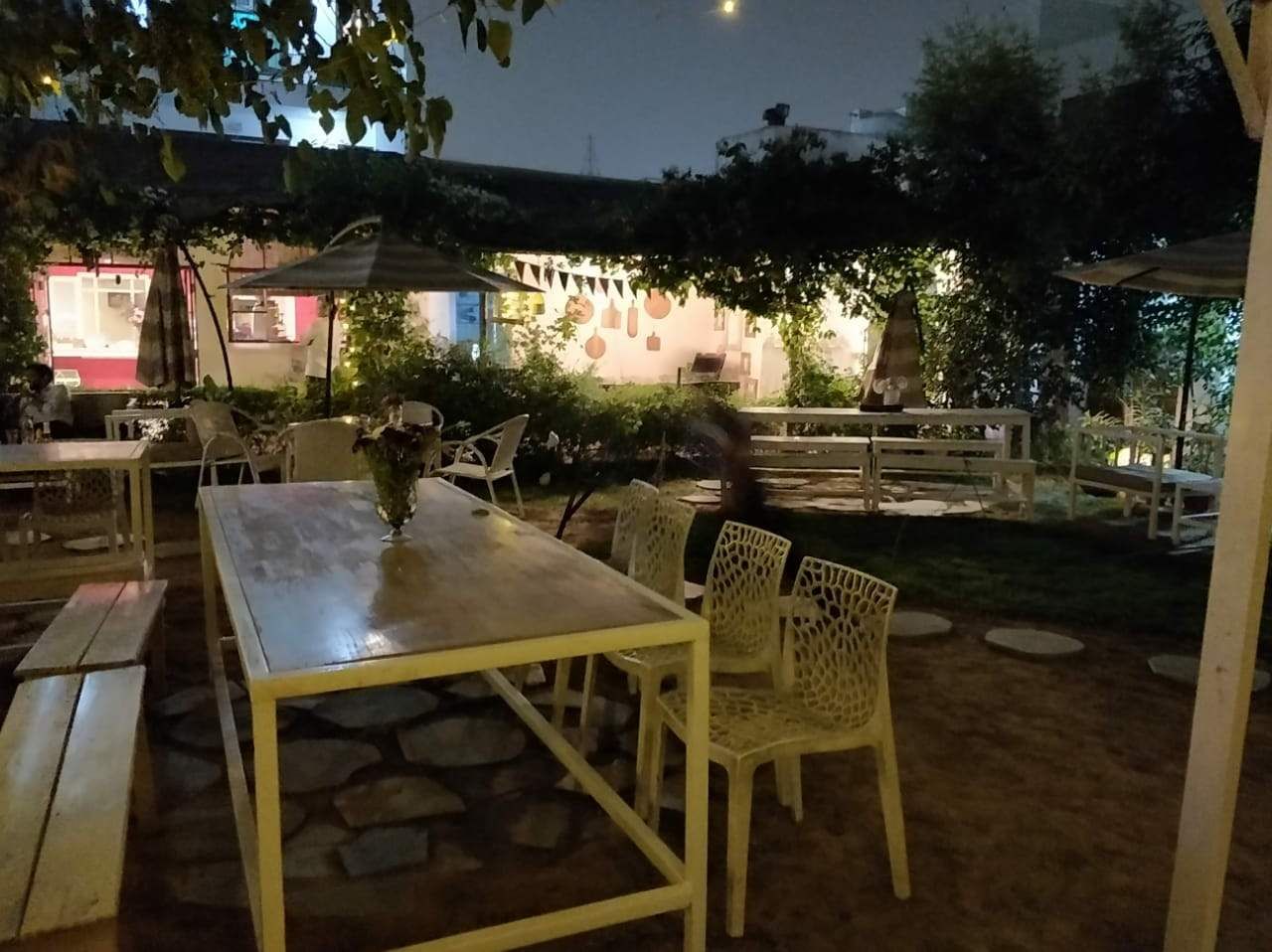 The seating is comfy and far away from other seated customers so you can have your own private space under the stars and they've lit it up with beautiful and aesthetic decor. The food is tasty and made in olive oil. The music is soft jazz. A perfect place to talk about your dreams and hopes and fall in love all over again.