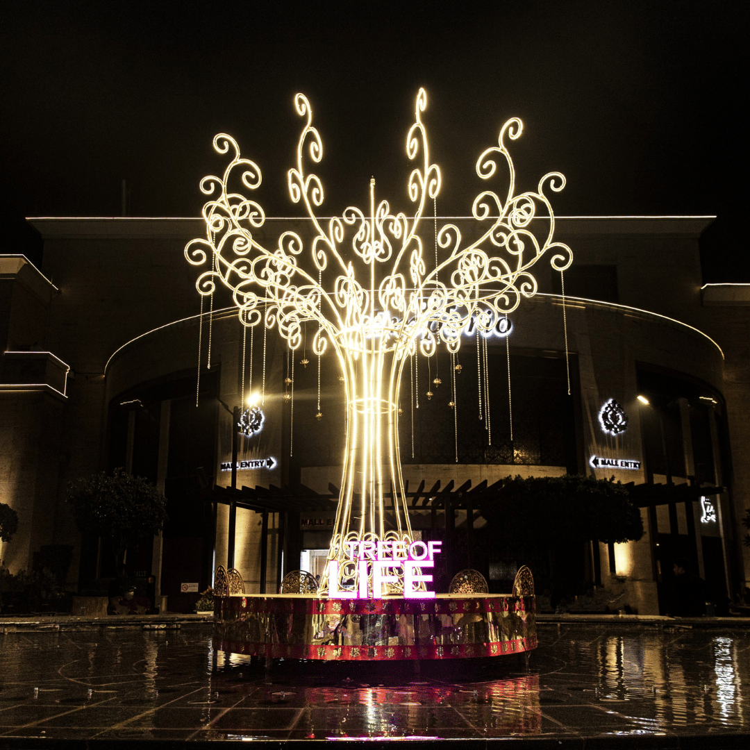 This year, DLF puts a green foot forward with their decor with a focus on sustainability, introducing ‘The Tree of Life’. Decorated with recycled wires, it embodies the spirit of sustainability and the light of the festive season while conveying the importance of supporting a sustainable lifestyle amidst all the celebrations.