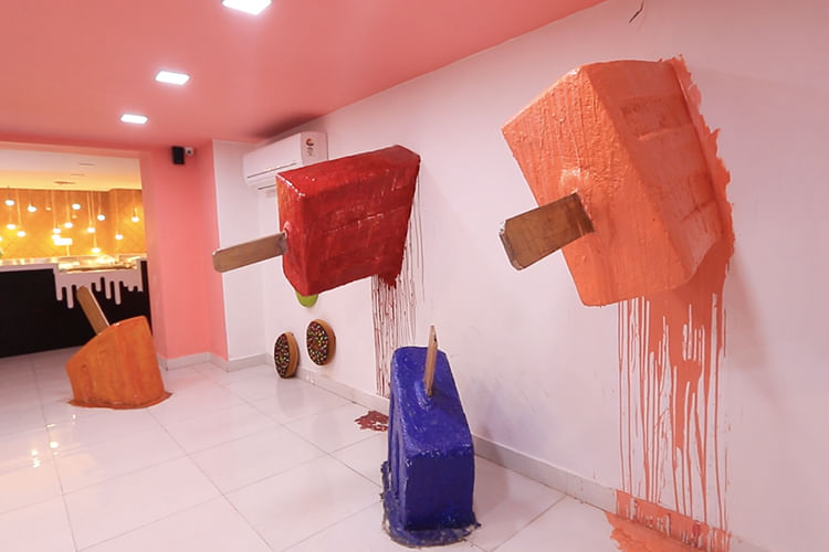 You’ll be pleasantly surprised by the quirky decor of this place. Even the wall-decor is shaped like fresh fruit, but what really made us stay was the 3D ice-cream museum on the first floor which is totally worth a feature on your Instagram feed. With cool giant murals and installation of ice cream spread scross the walls and floors {think half eaten ice-cream emerging from a wall near you}, it’s unlike we’ve seen in the city.