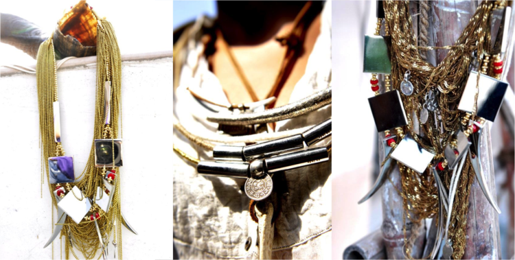 The designs and the concept of En Inde is based on the story of India and its status quo. You have concrete, steel jungles, and then you have actual, literal jungles where survival of the fittest is redefined. You have the history of India, imminent in its monuments and ruins. And then you have urban structures breaking out in between all of this. Call me dramatic, but these characters are represented in the bespoke pieces En Inde makes. The strings of their necklaces are made with cotton threads, jute or leather, and through all these 'rural' textures you’ll find a burst of steel cut into different shapes and sizes, or antique silver pendants, shells, semi-precious and wood beads. Much like India to me, I found the jewelry complex yet exquisite, classic yet avant-garde. Sure there’s contrast, but it all amalgamates into something interesting and unique.