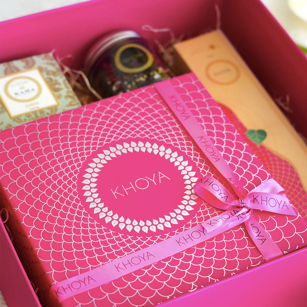 The hamper boxes also contain an exclusive KAMA ayurveda for KHOYA candle and incense sticks by PHOOL, a sweet n aromatic Meetha paan fragrance which is a pre-launch special in collaboration with KHOYA.