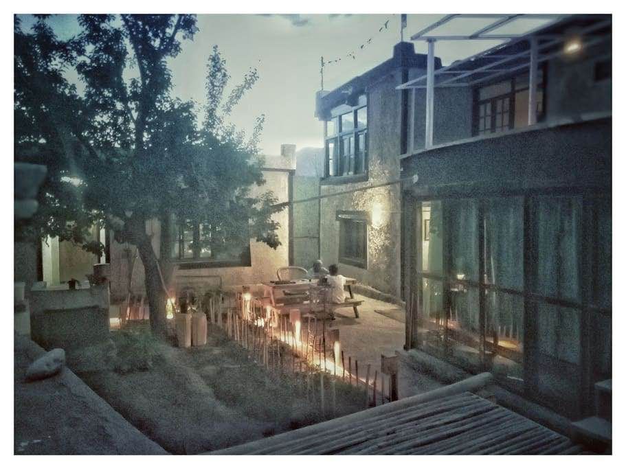Hearth hostel is a restored community space for travellers of all sorts. They have a female, a male and a mixed dorm along with private rooms. The hostel has tables for seating at the entrance and is located right behind a polo ground in Leh. The cooks serve you yummy food and Maggie as per your request.