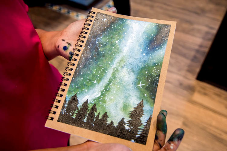 Galaxy Painting On Notebooks! Join Us At Fabindia Lajpat Nagar To Add Some Spark To Your Journal