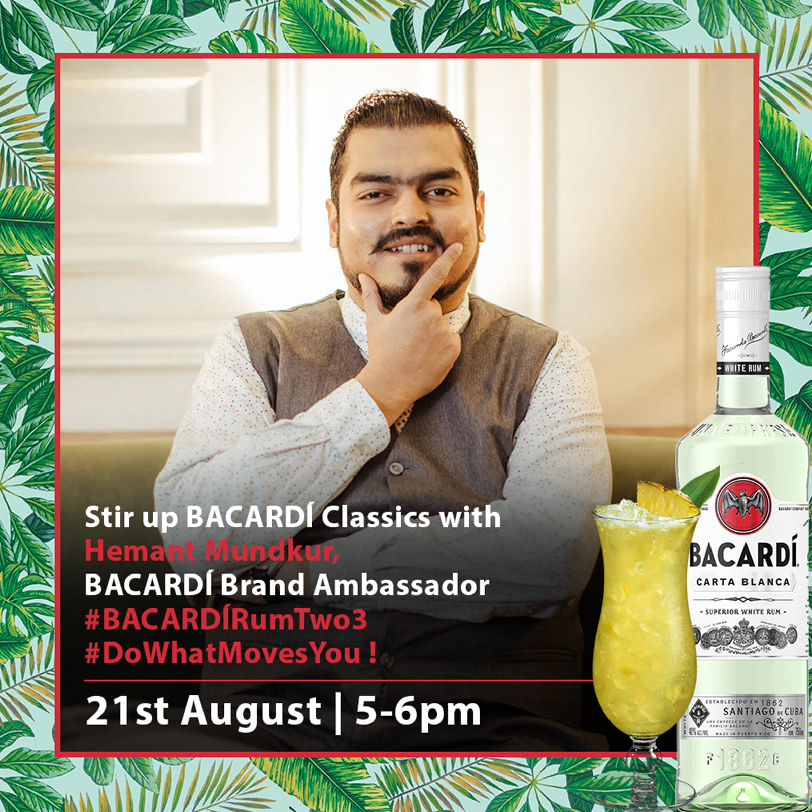 Weekends at home can honestly get boring AF, right? So it’s no surprise that we’re on the lookout for something fun and exciting to do. Well, we’ve got some good news for you! How does an at home Cocktail Making Workshop sound? Sounds pretty exciting to us. And get this - it’s hosted by Hemant Mundkur, BACARDÍ Brand Ambassador who’s all set to show you how to make exciting and refreshing classic BACARDÍ Rum Cocktails in your own home.