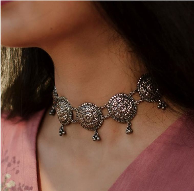 Also, find rings, nath, anklets, jewellery sets, maang tika, necklaces, jhumka and chokers in beautiful, elegant and sophisticated designs. I personally loved the range of rings - check out this one called Maahi with delicate cutwork paying tribute to our country's rich cultural heritage. Another piece that left me impressed was the Chandra chokers - a stunning arrangement of circular motifs with floral patterns. But if it's bracelets that you're looking for, we'd totally recommend Pauhchi - a traditional Pahadi silver bracelet weaving solid silver balls together with a beautiful red thread.