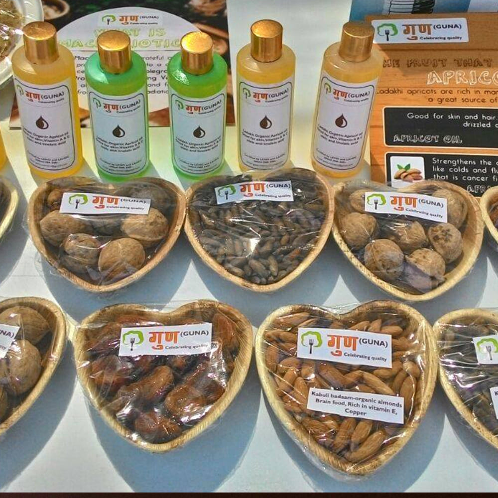 Guna is an online-only brand that offers certified organic produce from Tamakchik, an eco-village in Leh. Their range of organic products includes nuts, oils, and squashes.