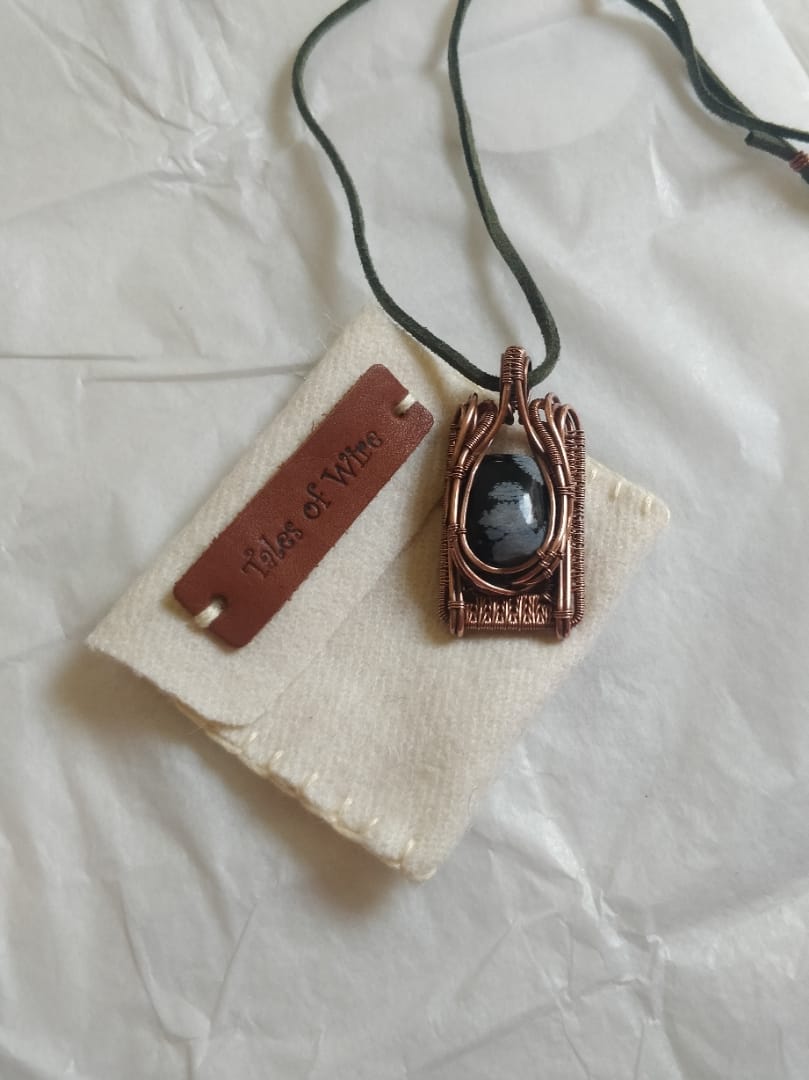 If you are looking for one of kind jewels, then Tales Of Wire is a definite must on your jewel list. To be honest, their pieces are what you would call - wearable art. Like this beautifully handcrafted snowflake obsidian copper wire pendant.