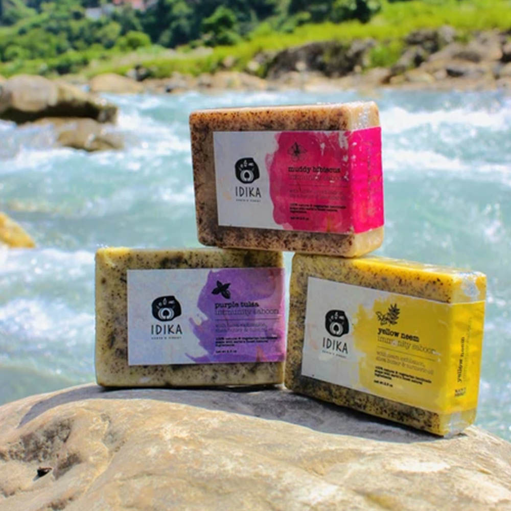 Some of the soaps we love include the Muddy Hibiscus which has a floral scent, Purple Tulsa and Yellow Neem. The soaps are available as saboons (soap bars), liquid body wash and liquid hand wash (and we all know how often we're running out of those.) The soaps are also mildly exfoliating so it helps improve skin texture, too.