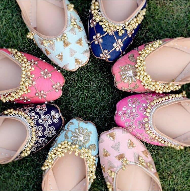 The unmatched beauty of handcrafted footwear is what makes Jutti.Hub, a brand from Punjab, our favorite online jutti spot! Shop for a variety of designs and patterns like floral, two-tones, printed and embellished footwear here. My favourite of the lot are their silver gota-pattern navy juttis. I absolutely love how unique and rare the color is, and how simple the design is. While on most days I would prefer something that's elegant, I am a lover of loud, heavy work as well. And to my favor, they offer both.