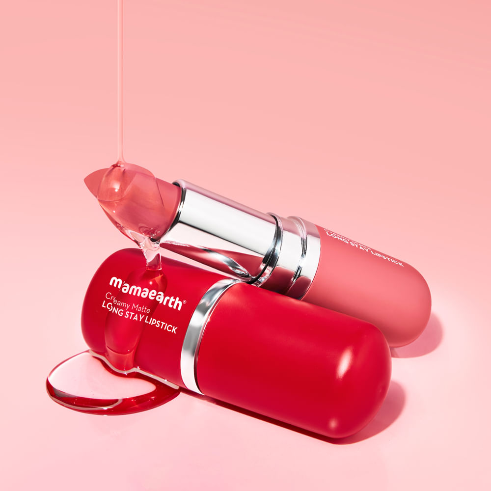 Tired of your lipstick playing disappearing acts by midday? It's the classic struggle with creamy matte lipsticks – they just don't seem to stick around. Well, it’s time to say goodbye to coffee cup stains and smudged looks with Mamaearth's Creamy Matte Longstay Lipstick! This creamy formula stays put for a solid 8 hours, surviving sips, bites, and even those scorching summer days. With its richly pigmented matte formula, your lips stay moisturised, protected, and oh-so-smooth, without any dryness, flakiness or bleeding.