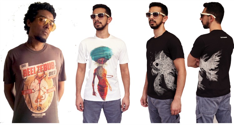 Contraband was started by Ravi Rana and Valmik Babbar, who have been friends for years. Ravi is a graphics designer who strangely started off as a copywriter in O&M, and Valmik, with a background in 3D animation, has just always had an artistic bend. I have had the chance to meet and hang out with both of them, and what I can also tell you about them is that they are total metal-heads too! The idea of creating a t-shirt brand came from the teenagers inside them that have been fascinated with dragons, sci-fi, monsters and art work that is fuelled by fantasy. Sure it's possible to make posters and lie in bed and stare at them, but there are a billion canvases out there; wardrobe staples that are open to anything - then why not put a dragon right there? If you watch a couple of the recent Pentagram videos {including the one we featured just a few weeks ago} you will notice Vishal Dadlani wearing a Contraband design, and Randolph wearing a Contraband t-shirt every now and then, when making an appearance. Their fan following certainly is growing, and in the right direction.