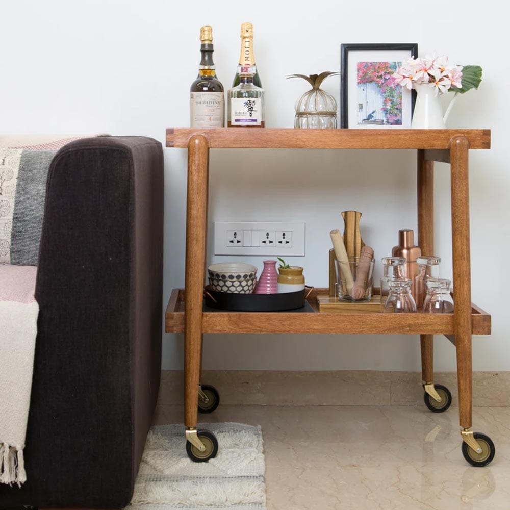 What caught my attention was the design and aesthetic of their furniture, and that they shipped all around India (they're based out of Hyderabad). Specializing in handcrafted sustainable furniture and home accessories, I purchased two beautiful ikat print chairs and a super suave bar trolley from their website, both of which got delivered via a courier and without any damages or issues.