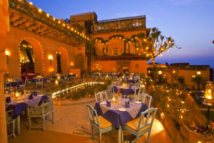 Stunning architechture, gorgeous hanging gardens, two pools, and an Ayurvedic spa, this fort is all things royal. They take special pride in their 14-tiered rich heritage. Plus, the fort offers a gorgeous, 360-degree view of the bright mustard firleds surrounding the property. The location of the fort works out pretty well, being equidistant from Delhi, Agra and Jaipur. With 72 rooms and suites that can accommodate around 150-300 people at once, your wedding party will be more than comfortable here.