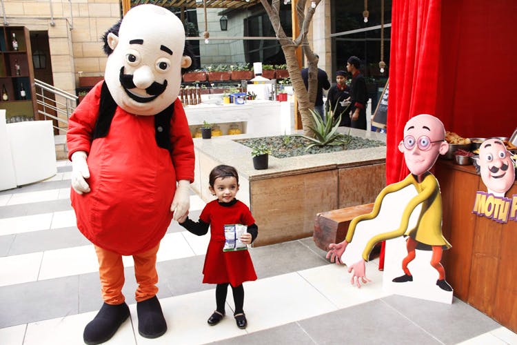The brunch has a kid-friendly menu, so you can expect some cartoon character-themed dishes. The themes was Motu & Patlu when we visited them, complete with samosas and street food.