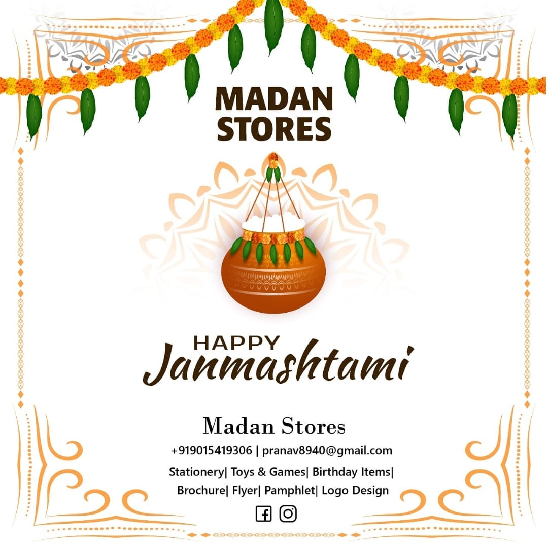 On this auspicious day, I wish you and your family love, light, happiness and laughter through Bal Gopal's blessings. . "MADAN STORES" Wish you all a Happy Janmashtami !!