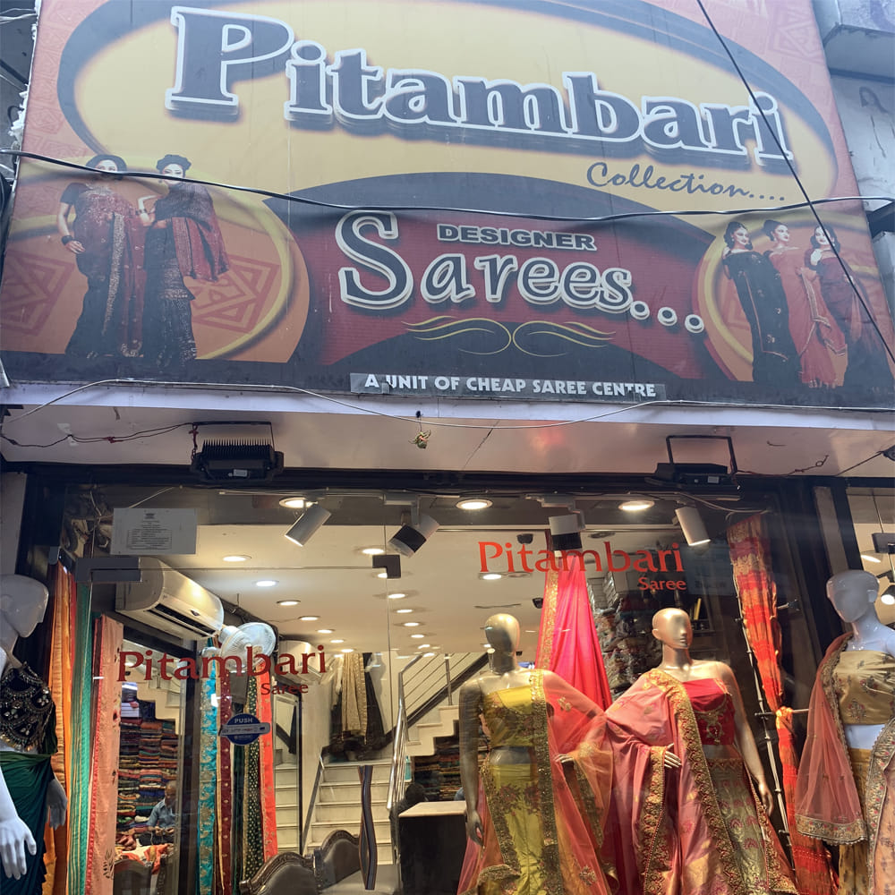 Pitambari Collection in Jwala Heri Market is quite famous for its collection of saris and lehengas. Just in case, you are looking for a bridal lehenga, your search will end here.