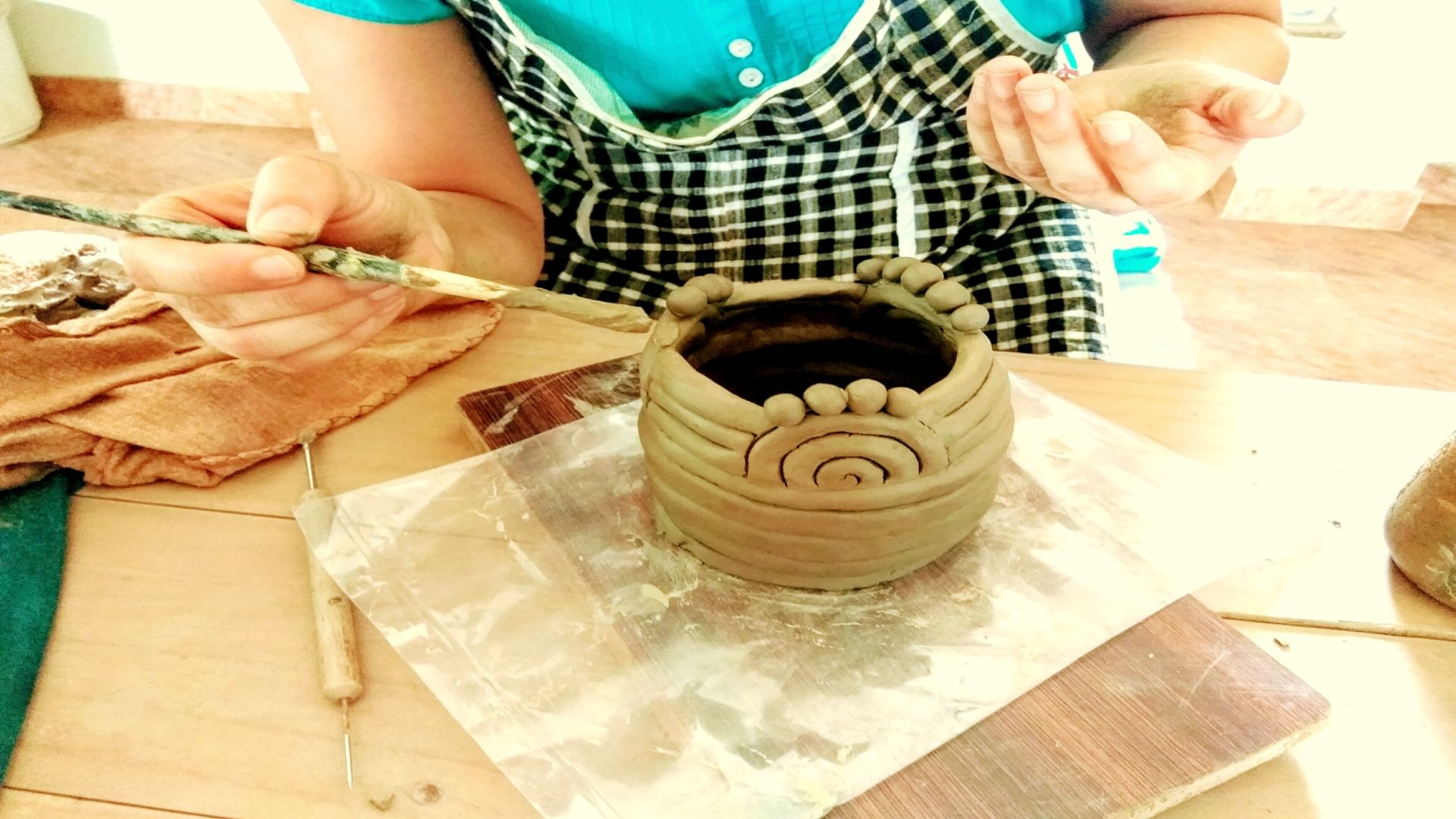 Learn making pottery using a handbuilding technique like pinch, slab and coil and discover the joy of creating your first pot. Our workshops are designed for beginners who always wanted to try their hands in clay. Each participants shall independently create their own project under our supervision and guidance. Those who want to try their hands on potter's wheel will also get a chance to see how clay moves on spinning wheel. At the end of workshop, you can take back your creation home.