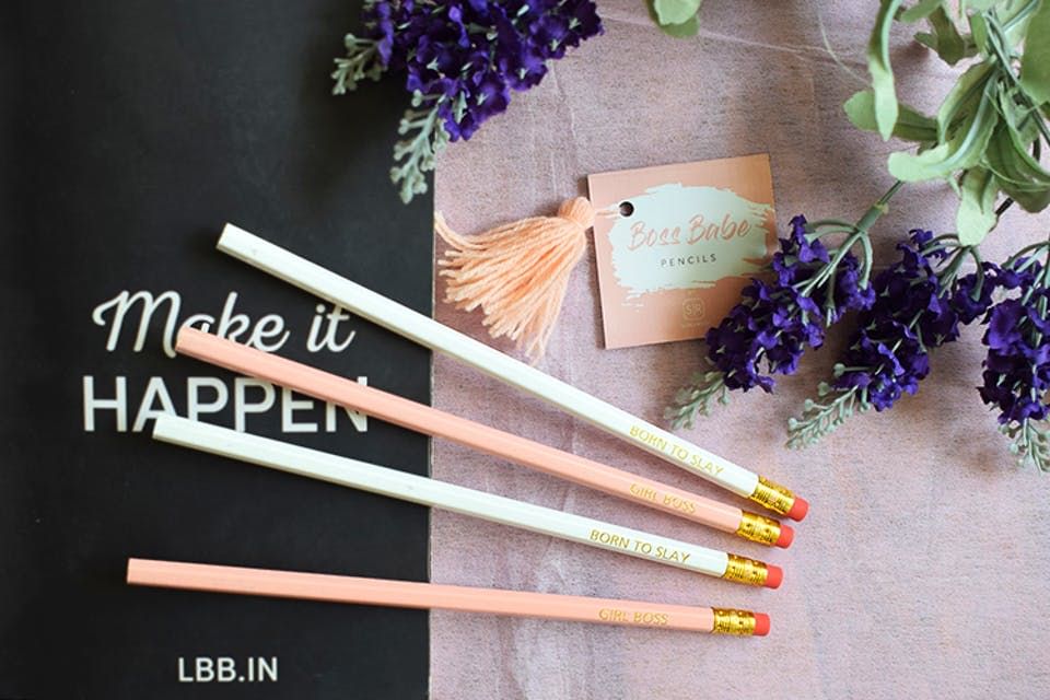 These trendy, statement pencils are just perfect for any stationery enthusiast. The pencils are hex, which means they won't roll of your desk. They're dark, rich and great to write or sketch with. You get a set of four with quotes on them.