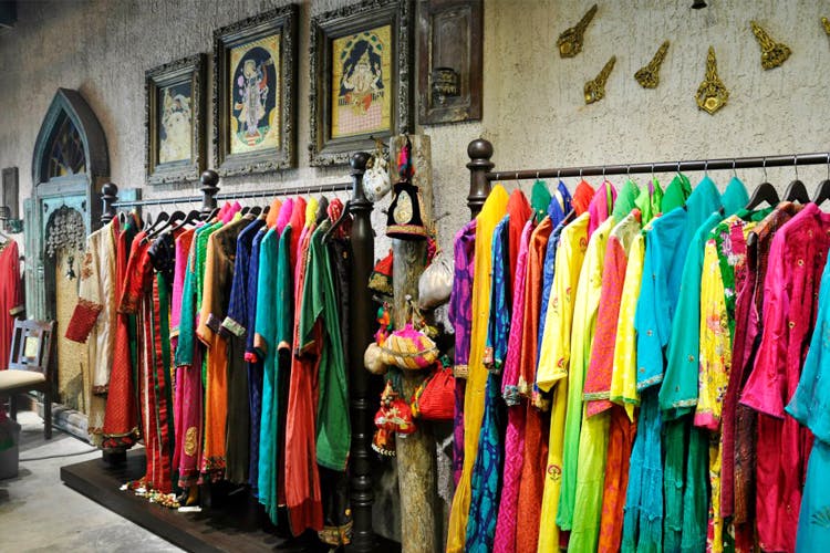 Pink, neon green and turquoise blue, these are the kinds you’d buy a fancy ethnic outfit for. Speaking of which, Rivaayat also stocks designer outfits – palazzo pants, churidar-kurtas, and angarakhas. The next time you need to go shaadi shopping, stop by Rivaayat before heading to Delhi.
