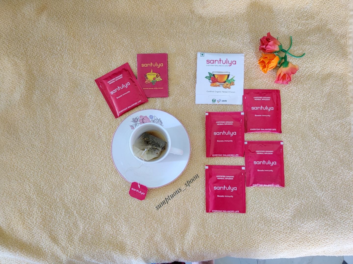 Santhulya - certificate organic herbal infusion for an everyday balanced life. I ordered this herbal tea in Amazon and it's delivery all over India.